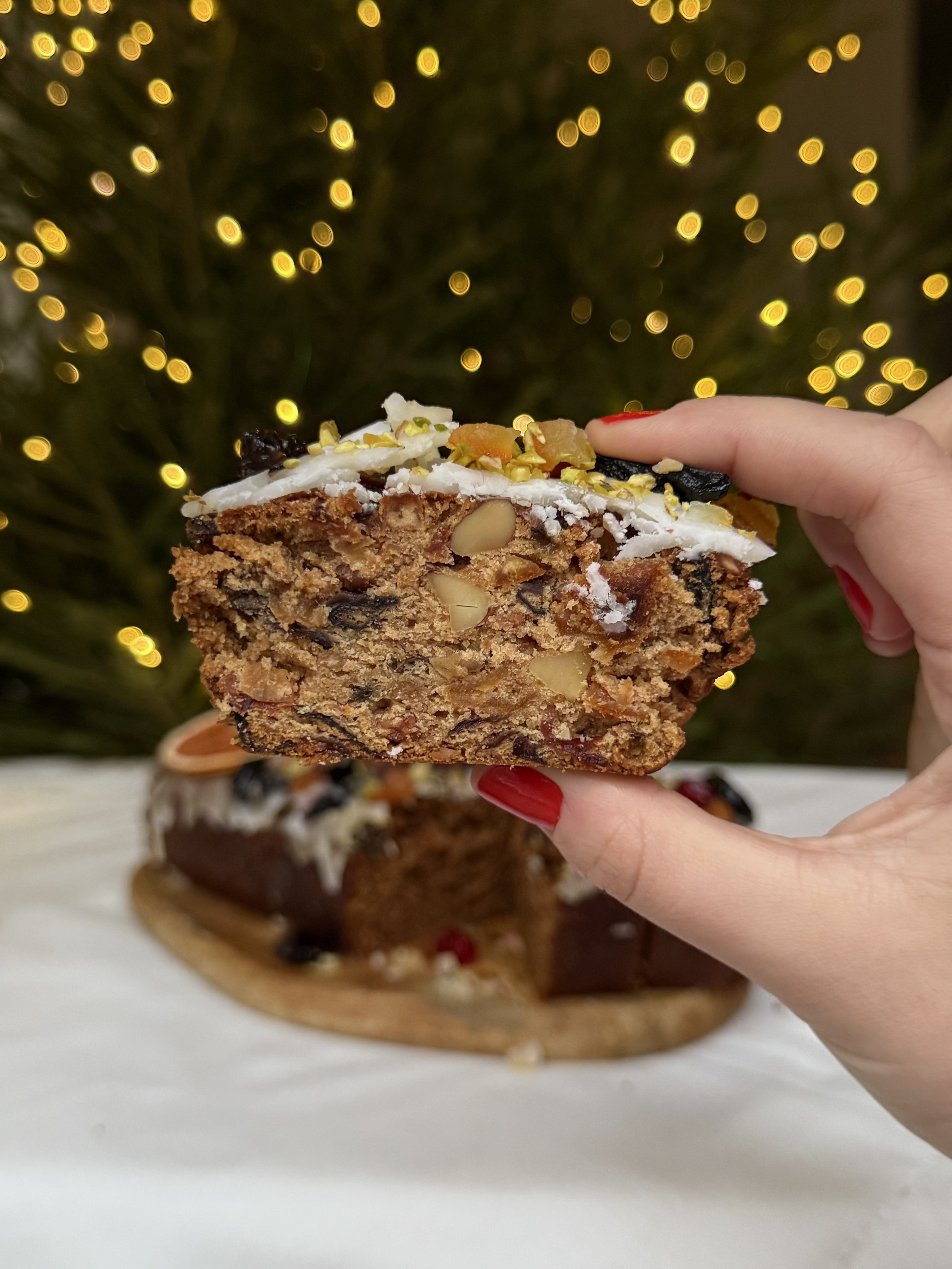 Тесто для кекса на 70% состоит из цукатов и миндаля, а после выпечки кекс в течение месяца и даже более (к сроку торжества) еженедельно пропитывается ромом. В результате все ингредиенты: цукаты, миндаль, пряности, ром в течение этих месяцев проникают друг в друга, растворяются в тесте и получается необычный, волшебный, вкусный кекс, достойный быть во главе праздничного стола.