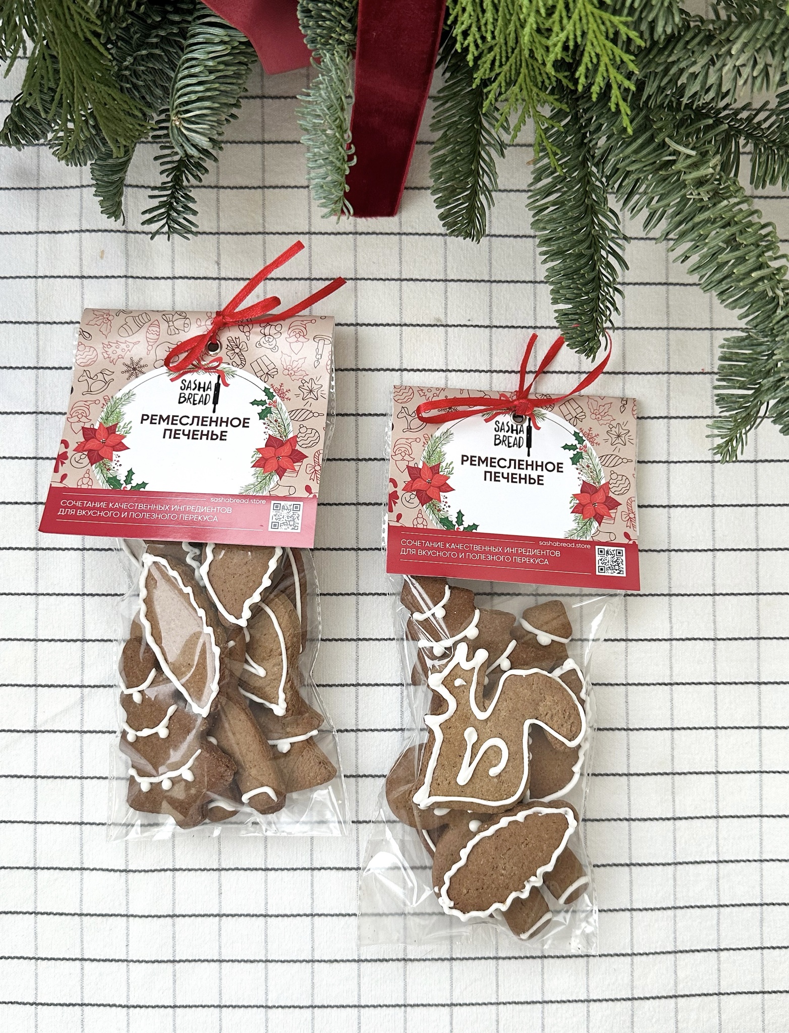 Традиционное имбирное печенье в разных формах порадуют и взрослых и детей. 100 гр. удовольствия в новогодней упаковке.
