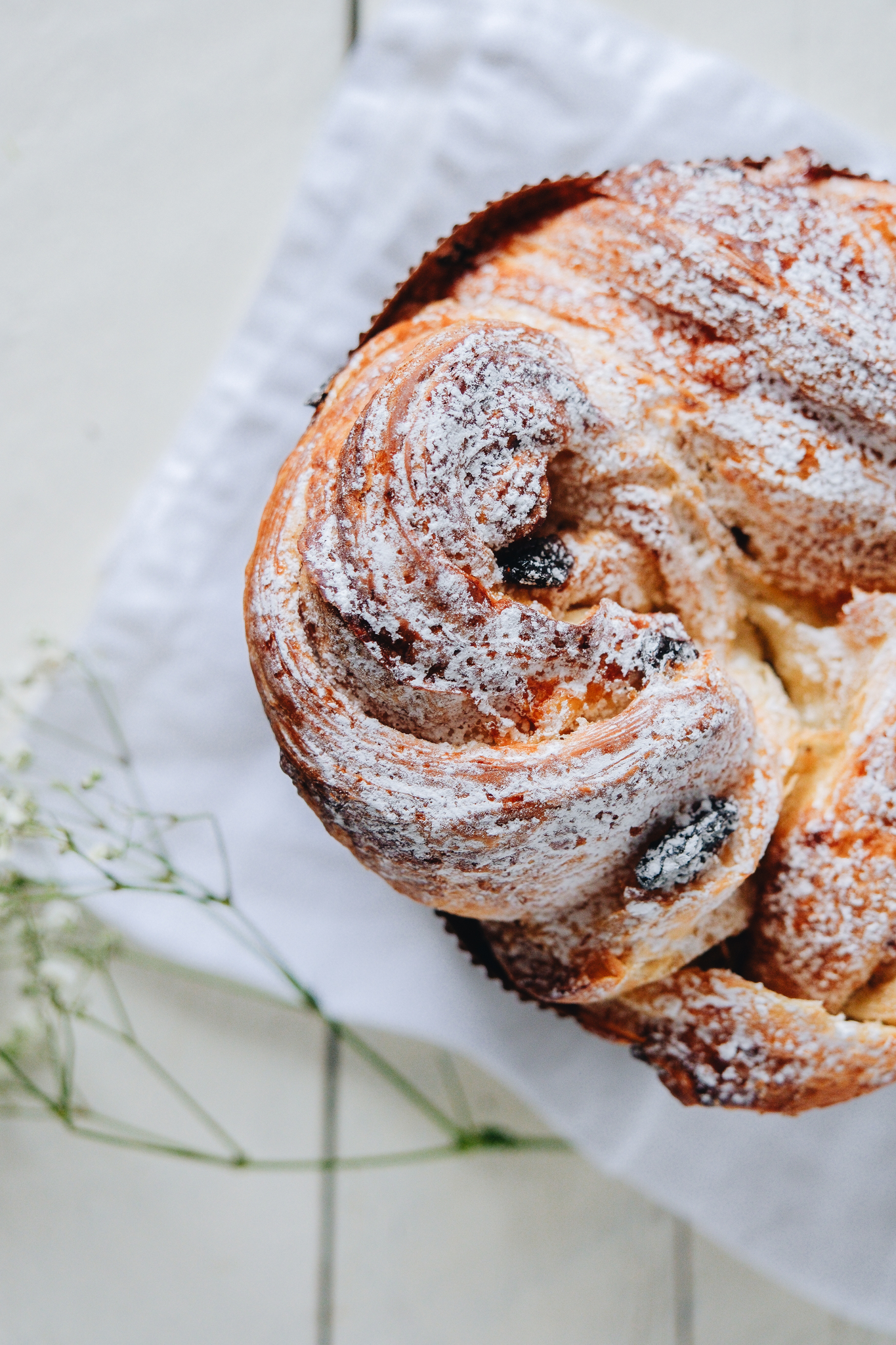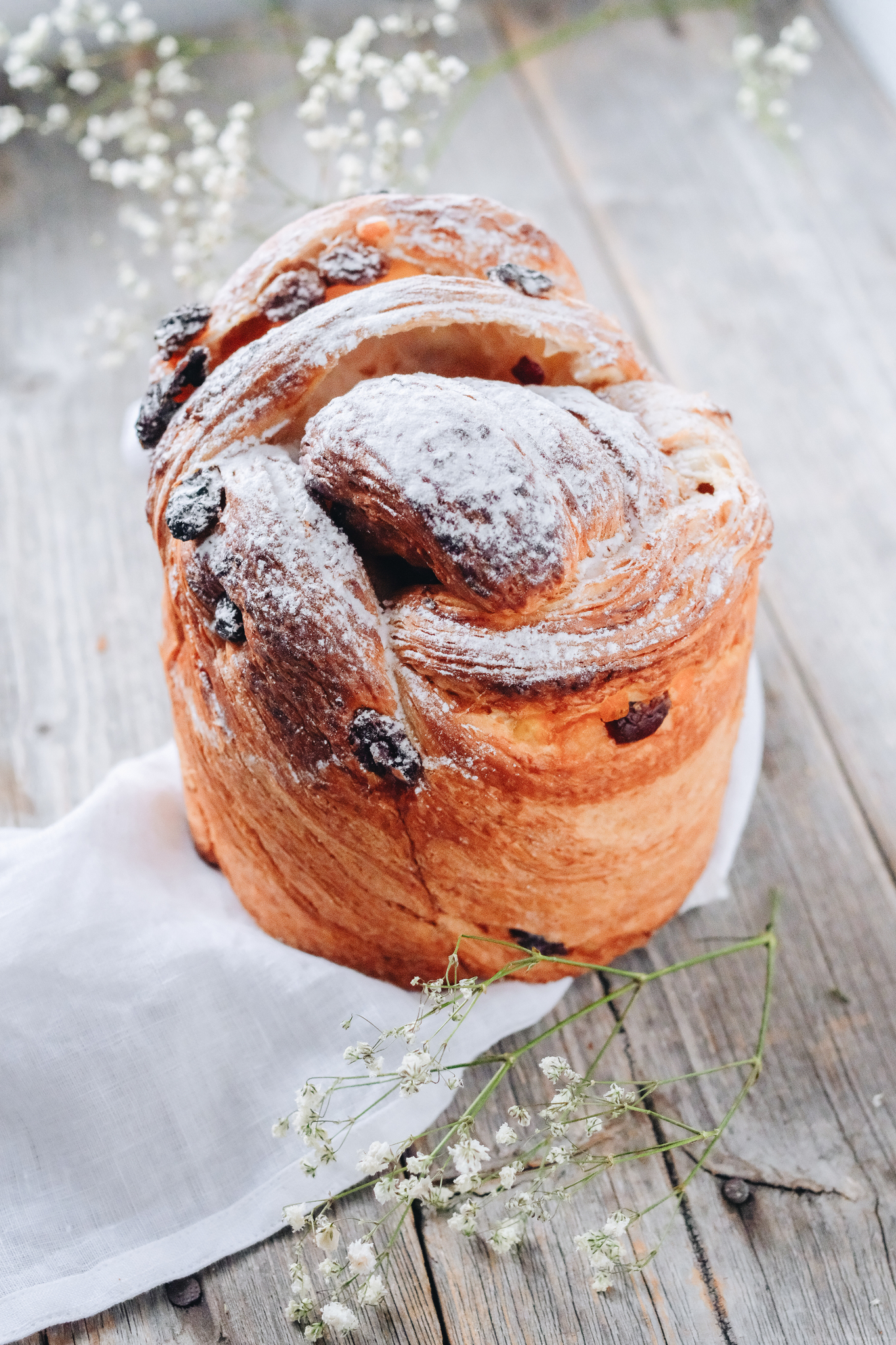 Описание: Необычная выпечка, которая сочетает в себе круассан и маффин. Тесто у краффина очень нежное, воздушное слоеное тесто с цукатами и клюквой.