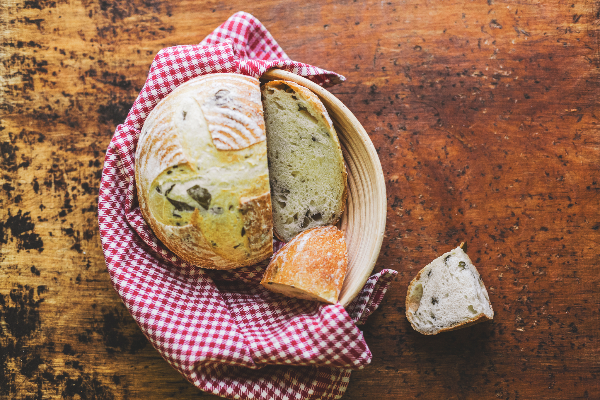 Пшеничный хлеб с добавлением оливкового масла Extra Virgin и свежих листьев зеленого базилика. Станет отличным дополнением к праздничному фуршету или гастрономическим мероприятиям. Воздушный, пористый, с хрустящей корочкой и изысканным ароматом Италии - оливок и базилика. Тесто готовится на основе оренбургской муки высшего качества, чистой воды и дрожжей. Замешивается вручную и созревает естественным путем в течение суток. Выпекается в подовой печи.
